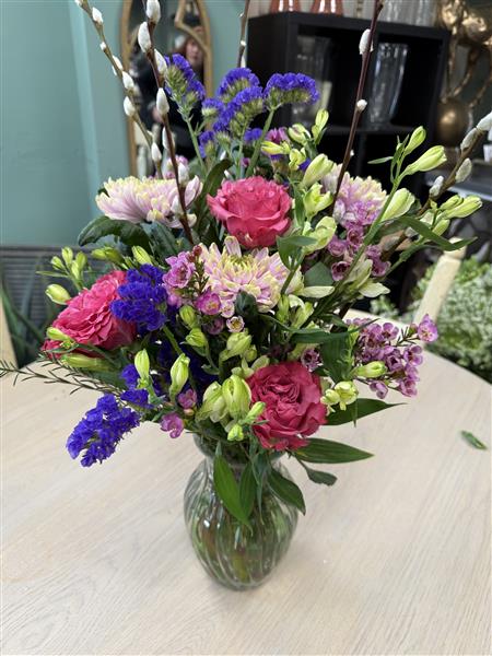 Please note that due to the seasonal availability of flowers it may be necessary to vary individual stems from those shown. Our skilled florists may substitute flowers for one similar in style, quality and value. Where our designs include a sundry item like a vase or basket it may not always be possible to include the exact item as displayed. If such an occasion arises we will make every effort to replace the item with a suitable alternative. Delivery times can be requested but our not guaranteed. Please call us to arrange.