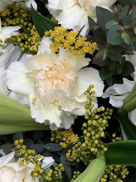 Mix of lemon cream and white seasonal flowers .