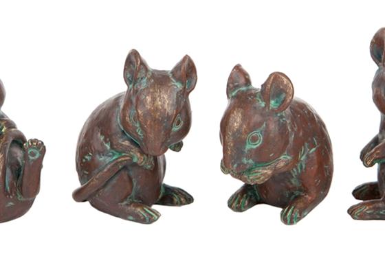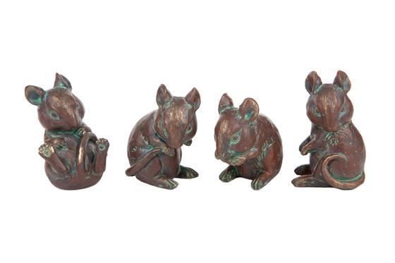 Set of four mice in bronze finish.Dimensions: approx 6 x 4.5 x 7.5 cm each