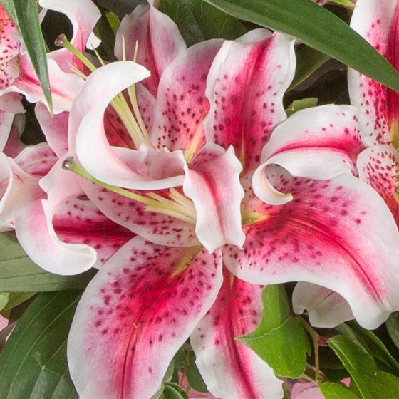 Pink stargazer lilies combined with mixed greenery are all this bouquet needs to make a stunning display of highly perfumed blooms.