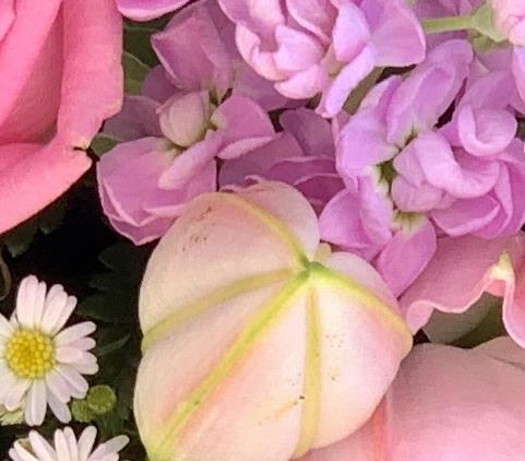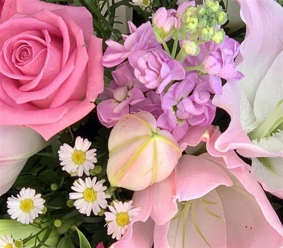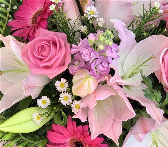 Selection of pink and white seasonal flowers