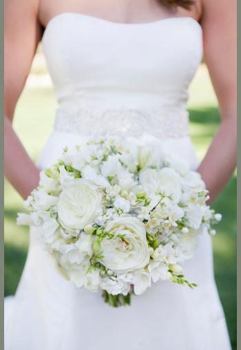 David austin roses and freesias make a soft ad elegant look.Available all year round