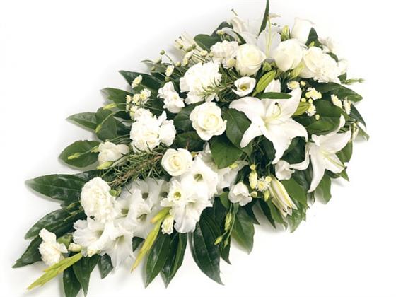 Mixed sheaf including Lilies, Gladioli, Chrysanthemums, Stocks and complementary foliage. Size: 48cm (19").